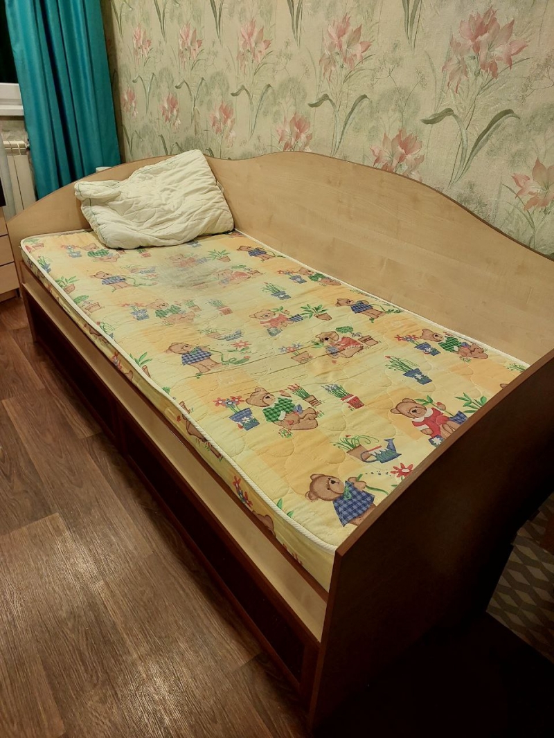 Размеры: 95 х 203 см Высота стенки изголовья и изножья: 78 см Высота боковой стенки: 90 см Высота до матраса: 35 см Спальное место: 90 х 200 см Матрас: Релакс Сладкий сон - 90 х 200 см Только самовывоз.